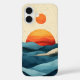 A fiery orange sun meets layered sapphire-blue hills, creating a striking and modern nature scene full of balance.