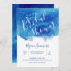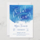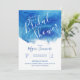 Affordable custom printed bridal shower invitations with an abstract blue watercolor background and modern hand-lettered script typography. Personalise it with your wedding shower details. Use the design tools to change the text fonts and colours or add additional text and photos to create a unique one of a kind design. A stylish and fun invitation design, perfect for a beach-themed wedding!