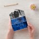 Blue Sapphire 45th wedding anniversary party with a tear-off RSVP or QR code option. Typographic script on a sapphire blue abstract art background. Simple modern contemporary design, personalise with your own sapphire wedding event details, couples name and reply details, website QR code and your favourite photo. This design requires no extra envelopes and has a detachable perforated RSVP or guest can scan your own QR code for super easy replying. Matching anniversary wedding products and other colour options and years are available in the store. Original painting and design by Sarah Trett for www.mylittleedenweddings.com