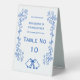 Sapphire Wedding Table Tent Sign Bells Scrollwork