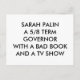 SARAH PALINA 5/8 TERM GOVERNORWITH A BAD BOOKAN... POSTCARD