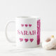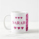 "Sarah" Pink Hydrangea Floral Letters, Cute Hearts Coffee Mug