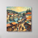 Sarajevo Riverside Bazaar Scene Canvas Art