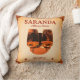 Throw pillow with image of 2 wine glasses from a chic wine bar in Saranda, the Albanian Riveria.
