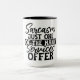 This mug features a playful and witty design with the text "Sarcasm Just One of the Many Services Offer" in bold, stylish fonts. The humourous message makes it a perfect gift for those who appreciate a good dose of sarcasm in their daily routine. The black text on a white background ensures the message stands out, adding a touch of personality to your coffee or tea breaks.
