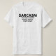 Sarcasm T-shirt saying "Sarcasm The body's natural defence against stupid people. Funny t-shirt with loads of attitude and fun. A great funny shirt to wear anywhere.