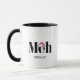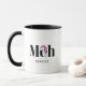 Looking for a personalised mug that perfectly captures your apathy towards Christmas? Look no further than this "Meh" mug! Featuring the word "Meh" in bold black lettering and topped off with Santa's iconic hat (modernised in pink) sitting on the "e," this mug perfectly expresses your boredom with all the holiday cheer. Perfect for anyone who doesn't see what all the fuss is about when it comes to Christmas, this "Meh" mug is both humourous and practical. So if you're someone who can't muster up much enthusiasm for the holiday season, this "Meh" mug is the perfect addition to your morning routine. Whether you're giving it as a gift or treating yourself, it's sure to bring a smile to your face every time you use it.