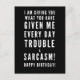 Sarcastic Happy Birthday Wish for a friend - "I am giving you what you have given me every day, trouble and sarcasm! Happy birthday!" Perfect for your friends who speak fluent sarcasm! Classy and to the point black and white typography sentiment. Like how I roll? Check out other designs and illustrations in my store :)