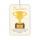 This sarcastic gold parking trophy award air freshener for a vehicle is for the 1st place winner of the world's worst parking job. It's a funny way to make a point about someone's terrible parking job. The back "You suck at parking!! and Learn to drive!" text is customisable, along with the background colour.