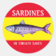 Introducing our Sardine in Sauce Label Sticker, crafted to highlight the deliciousness and high quality of your sardine products. The label features an appetising and vibrant design with illustrations of sardines, a splash of sauce, and subtle nautical elements like waves or anchors.