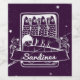 A vector illustration of a tin of sardines on a purple background. This fish tin has the look of a vintage, distressed poster with folds increases. A design for anyone who loves canned slash canned fish.