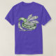 I give wanted to give this a 4 instead of a 5 because these Basic DARK T0shirts run unexpectedly SLIM or Narrow. Which is great if you do not have a potbelly, but I have a paunch. It isn't the shirt's fault that I've got a beer belly. The design and shirt itself is a quality cotton shirt. The color is more of a deep purple, but still a very pretty color. The Basic DARK T-shirts run a bit SLIMMER than the Basic Ts. The neck is a fraction narrower (or seems to be narrower) also. I'm a paunchy middle-aged woman and my neck is 12 inches (31cm) thick and the neckline fell about the same as in the photo of the man, and I had the desire to tug it a bit. So if you're a thick necked man or like loose shirts, be aware these are slimmer shirts. Once I get rid of my lockdown paunch it'll look great. The shirt washed well in cold water with no apparent bleeding. We don't have a dryer, so it hung dry. Did not shrink. Love the colors and the design. The design looks smaller on my shirt than it does on the model on-line. But still, it looks good on the shirt. The printing looks as it does on the model, just the size seems fractionally smaller. Washed garment in cold water, hung dry and design appeared unaffected.