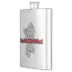 The product is a good size and came exactly as it was pictured. The lid is not attached to the flask, which could be dangerous on drunken nights... The print came out surprisingly well and looks very sharp. Would definitely recommend.