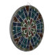 Composed of multiple sections, it features a layered and intricate appearance, with a vibrant colour palette including blues, greens, reds, and browns.
