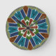 The area surrounding the central motif is adorned with repeating patterns characterized by fine lines, small shapes, and textures.
