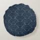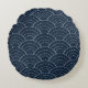 Sashiko Embroidery: Indigo Japanese Pattern. Round Cushion
