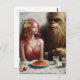 A beautiful woman with red hair and Sasquatch meet up for a spaghetti night dinner fantasy art