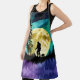 Sasquatch and his pet bear walking on the mountain under a full moon