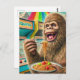 A Sasquatch eating spaghetti at a retro arcade cute funny fantasy art AI generated art