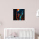 Sasquatch Moonlit Hunt Poster. A majestic Sasquatch under a glowing orange moon. Set amidst an enchanting forest, with shimmering blue waterfalls cascading in the foreground, this design blends eerie mystery with natural beauty. The creature's piercing gaze and flowing fur are illuminated by the moon's glow, capturing the essence of untamed wildness