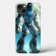 Sasquatch stands under a full moon surrounded by mountains, revealing a titanium exoskeleton of electronic circuitry and LED lights...