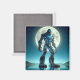 Sasquatch stands under a full moon surrounded by mountains, revealing a titanium exoskeleton of electronic circuitry and LED lights...