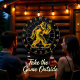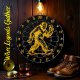1. Introducing the ultimate conversation starter for your man cave or tourist attraction sales outlet: a uniquely designed dart board featuring the legendary Bigfoot. This eye-catching dart board showcases a vibrant gold depiction of Bigfoot at its centre, complete with a playful smile and a peace sign, inviting players to engage in friendly competition. The background is a beautifully illustrated forest scene, with majestic pine trees flanking either side and a natural dirt and grass terrain underfoot, creating an immersive experience that transports players into the heart of the wilderness. This dart board not only serves as a functional game but also as a striking piece of decor that celebrates the mystique of the elusive Sasquatch.