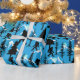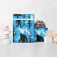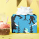 Bigfoot party themed gift wrap patterned with Bigfoots wandering through pine tree forests and mountains