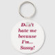 Are you full of sass? If so, you'll love this cute and funny keychain! The text is "Don’t hate me because I’m...Sassy!".