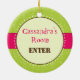 Perfect room decor for that sassy girl! Great to hang on your daughter's door. Bright tones of lime green and magenta call attention to this ornament highlighting your message in the circle against the leafy swirled background. Available in alternate colours with matching products.