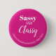 Get the party started with the Funny Sassy and Classy Pink Bachelorette Party Button! This accessory is perfect for adding a touch of humour and fun to your bachelorette party. With its pink and white colours, you can customise it with your own text message, whether it's the bride's name, event name, or event date. Sassy and Classy is here to make sure everyone knows you're ready to celebrate! This button is a great way to show your bridesmaids and guests that you're ready to kick up your heels and have a blast. Add a playful and memorable element to the festivities with this funny and stylish party button.