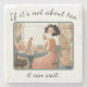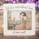 Retro-style Stone coaster with a tea-loving woman savouring her tea, two relaxed cats nearby, lace curtains, and a sassy message for tea enthusiasts