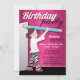 For kids! Cute little sassy girl with brown hair wearing a white shirt and zebra print pants, holding a big blue pencil drawing a line on a height chart that is personalised to show her age instead. The party details are custom printed in white and black fonts over a hot fuchsia pink gradient zebra print background. These invitations would look excellent upgrading to Metallic Ice paper stock, for that extra special touch! Bulk discounts apply.