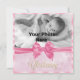 Beautiful elegant and sophisticated Christening cards for baby girl's, with a pretty pink satin bow printed image on a stunning pink/silver damask background and a cute shiny pink and silver border frame, with the word "Christening" at the bottom in beautiful gold writing. Customise the front of your invite with a photograph of your daughter. The reverse has the same printed background, frame and bow and your event details. All text is fully customisable to meet your requirements. If you need help to customise your product please contact me through my store and i will be very happy to help you.
