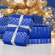 Rows of dots with a satiny gradient shaded from pale silver to deep pewter grey on a cobalt blue background