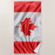 Beach towel with a satin look Canadian Maple Leaf flag, in red and white