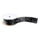 Satin ribbon is shown in black with a festive holiday Halloween bats print design.