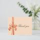 Pretty peach, pastel orange colour faux satin ribbon from top to bottom of this gorgeous wedding Thank you budget postcard. Simplicity with a hint of elegance at its best. Just lovely. Perfect for any season wedding. Write your personal message on reverse side.