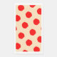 Big bold red polka dots dot the yellowish surface of this paper napkin