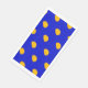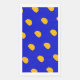 Yellowish orange polka dots dot the blue surface of this paper napkin