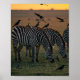 Bring the serene beauty of the African plains into your space with the 'Savanna Stripes Stillness' matte poster print. This artwork captures a tranquil moment where grazing zebras and a flurry of birds find harmony against a warm, golden savanna backdrop. The matte finish enhances the natural tones and intricate details of the scene, creating a sophisticated and calming visual experience. Perfect for adding a touch of understated elegance and the quiet beauty of the wild to any room. This high-quality matte print ensures lasting beauty and a timeless appeal.