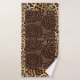 These cream beige towels feature a captivating patchwork design inspired by African wildlife. The bordered cheetah motifs intertwine with geometric patterns in a rich Hershey brown, celebrating the natural beauty of the continent.