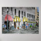 Savannah Georgia River Street cityscape Americana watercolor painting and pen and ink drawing mixed media illustration. Very colourful, modern and abstract art gifts. Old town historical architecture, café shops, restaurants, and bars