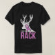 I give wanted to give this a 4 instead of a 5 because these Basic DARK T0shirts run unexpectedly SLIM or Narrow. Which is great if you do not have a potbelly, but I have a paunch. It isn't the shirt's fault that I've got a beer belly. The design and shirt itself is a quality cotton shirt. The color is more of a deep purple, but still a very pretty color. The Basic DARK T-shirts run a bit SLIMMER than the Basic Ts. The neck is a fraction narrower (or seems to be narrower) also. I'm a paunchy middle-aged woman and my neck is 12 inches (31cm) thick and the neckline fell about the same as in the photo of the man, and I had the desire to tug it a bit. So if you're a thick necked man or like loose shirts, be aware these are slimmer shirts. Once I get rid of my lockdown paunch it'll look great. The shirt washed well in cold water with no apparent bleeding. We don't have a dryer, so it hung dry. Did not shrink. Love the colors and the design. The design looks smaller on my shirt than it does on the model on-line. But still, it looks good on the shirt. The printing looks as it does on the model, just the size seems fractionally smaller. Washed garment in cold water, hung dry and design appeared unaffected.