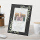 An elegant black and gold father-of-the-groom wedding memorial pedestal sign featuring a special photo, watercolor greenery and your own personalised poem. Reserve a seat at your ceremony at the table he would have sat at. Designed by Thisisnotme©