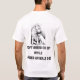 This tee is a must have for anyone involved in animal rescue or to help promote the adoption of animals from death row in shelters. The picture and wording on the back is 12" wide by 14" high. The rescue ribbon printed on the front is 2" wide by 4" high.
