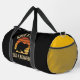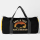 This witty black and light orange duffle bag features a beaver silhouette in front of a retro sunset, along with the humourous and controversial phrase "SAVE A TREE EAT A BEAVER." It's a bold statement piece for those with a unique sense of humour and appreciation for wordplay. Perfect for gym, travel, or just to spark a conversation. Edit colour of the bag caps and body in the Design tool to your favored colours.
