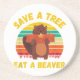 Save a Tree Eat a Beaver Funny Beaver Pun Adult Hu Coaster