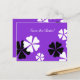 Black and white flowers on a deep purple background decorate this classy "Save the Date" postcard. The reverse has white lettering on the same background design. Very classy! Default text is for a 65th Birthday, but you can easily change the text for name, age, date, location, etc. Matching name and address label is zazzle product 106641237613375734. All Rights Reserved © 2015 Alan & Marcia Socolik.
