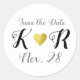 'Save the Date' design with the image of a small faux gold heart and with the bride and groom initials